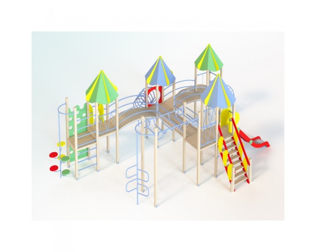 элементов. 4 башни на опорах с мостиком и канатом, с балансирующим переходом, горками,