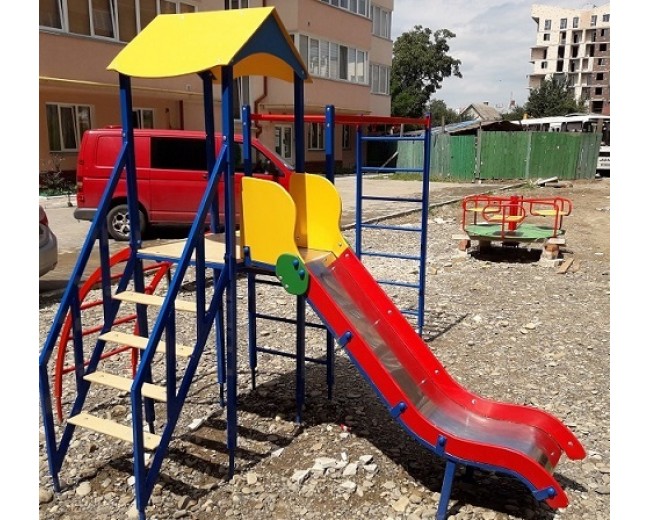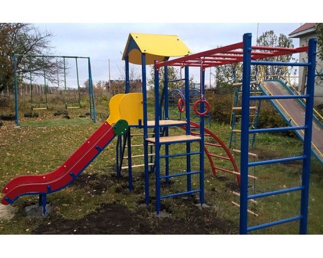 горки, шведской стенки, рукохода, турника и колец. Яркие цвета комплекса будут